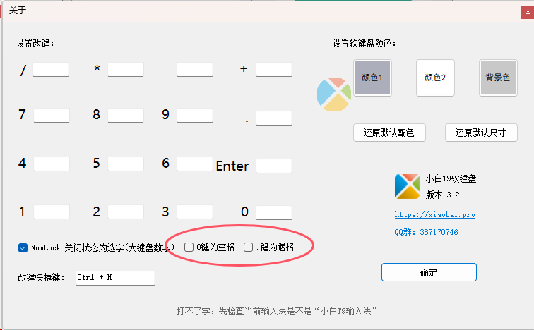 5、软键盘中添加:0键映射为空格 .键为退格 功能(需保持软键盘在后台运行)并同时修复了首次打开exe不加载改键配置的问题。