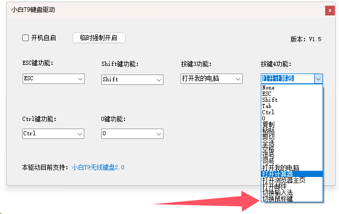 6、无线键盘2.0加入切换鼠标键的按钮,按下后可开启微软官方鼠标键功能:使用数字小键盘代替鼠标。
